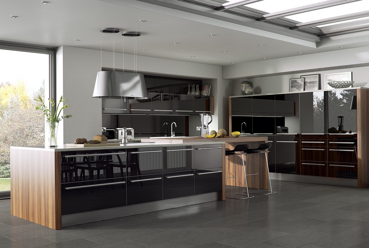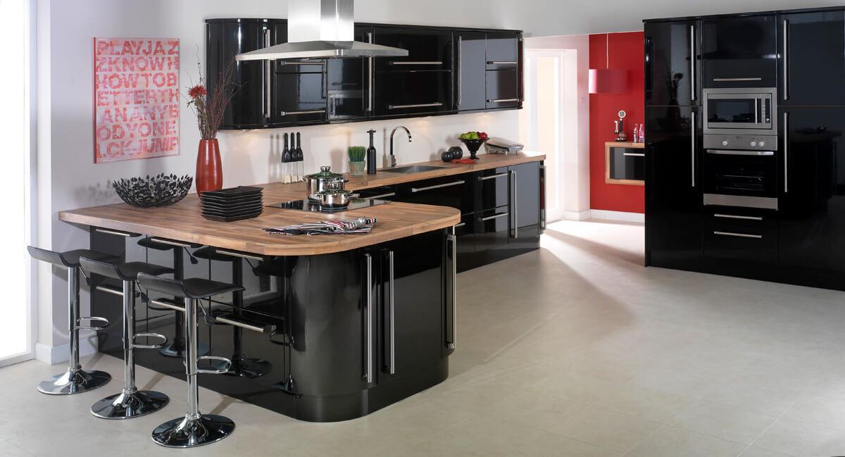 Black High Gloss Kitchen with Island Feature