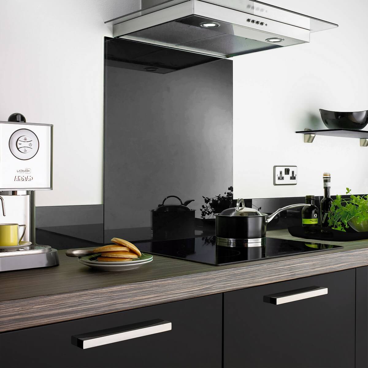 Black Glass Splashbacks in Kitchen.