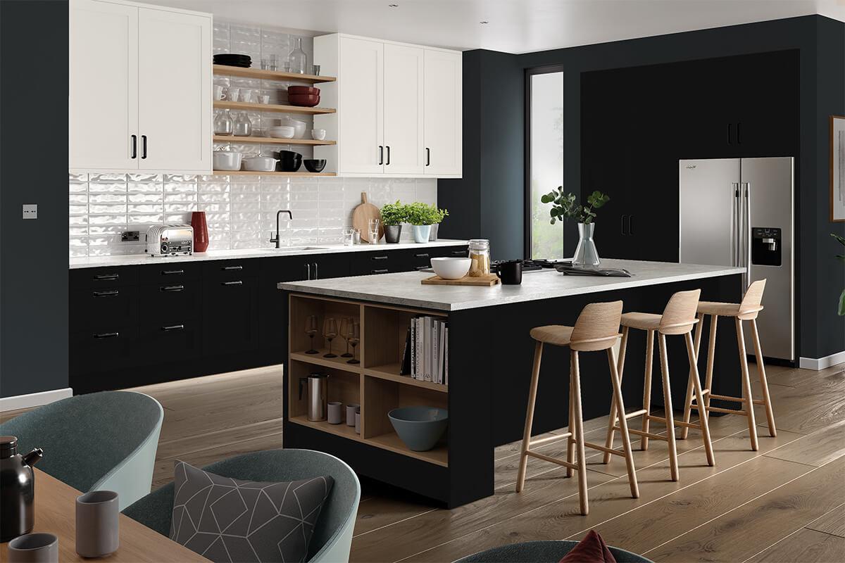 Black Shaker Kitchen Base Units with White Shaker Wall Units