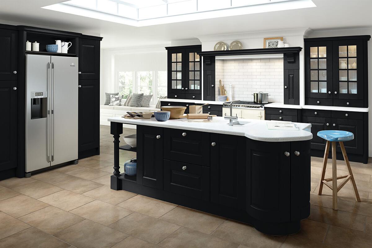 Helmsley Black Traditional Kitchen with a White Island Feature.