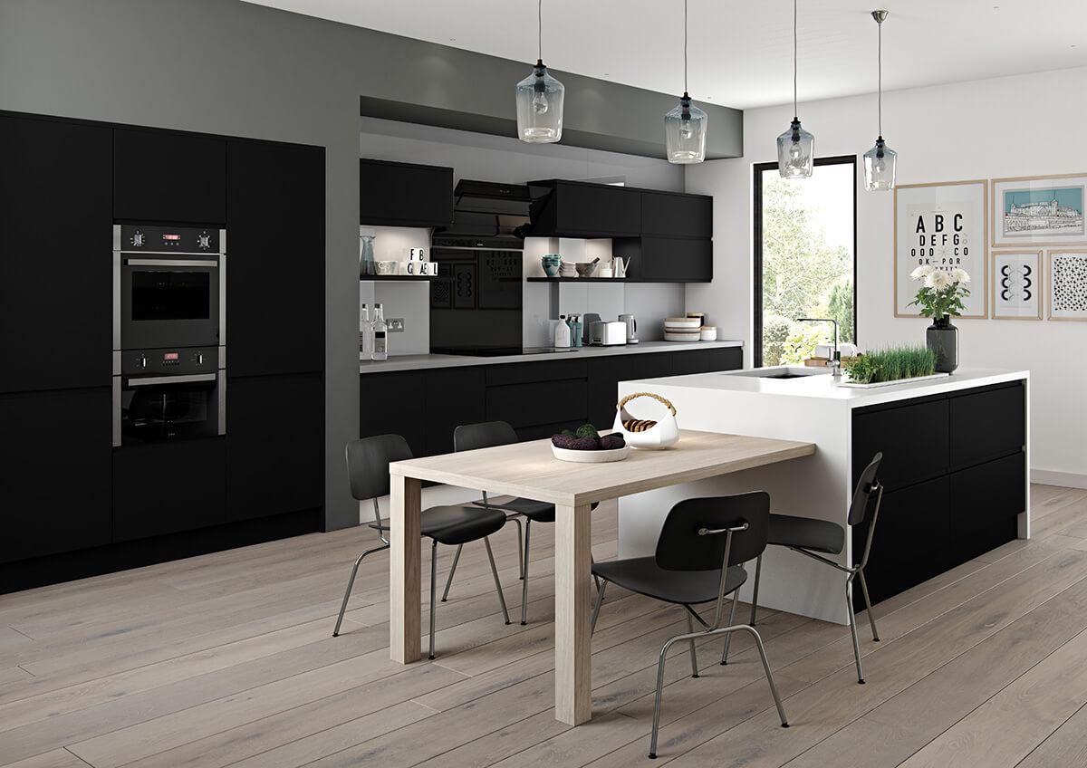 Senza Black Modern True Handleless Kitchen.