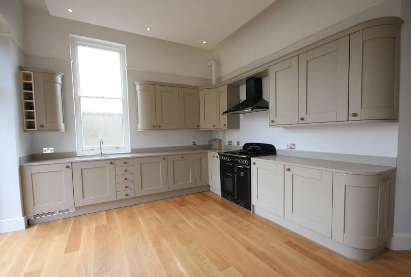 We are thrilled to showcase Beryl’s elegant Lynmouth kitchen in Kashmir! This wide-framed shaker kitchen presents an L-shaped design, gracefully concluded with curved units on the ends.