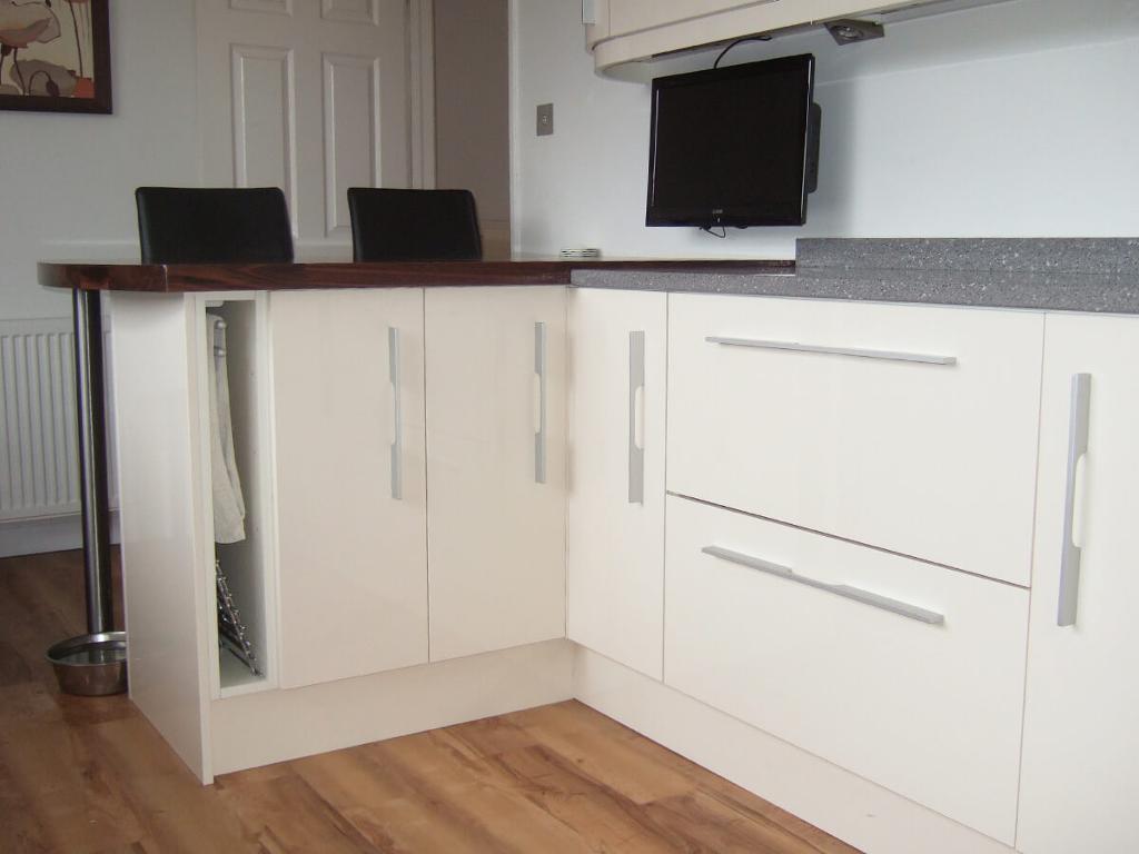 We’re thrilled to feature the Denelleys’ elegant Treviso kitchen in Ivory Gloss! This galley style kitchen is enhanced by grey quartz worktops and upstands, creating a refined look.