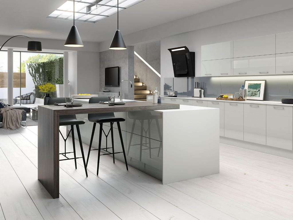 There are other kitchen styles too—woodgrain, matt painted, or true handleless for a very clean finish. Think about how the door will look with your flooring, wall tiles, and worktops before making your decision.