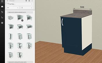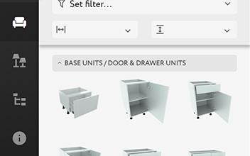 A list of available kitchen units is now displayed in unit groups. Click on a unit group to expand the display and a list of units will appear.