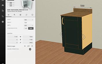 Change the size of any kitchen unit on the plan by either choosing from the options in the dimensions panel or dragging the 'Size Option Arrows' on the unit to the desired size.