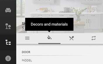 Click on the Decors and Materials icon to see the products that can be changed.