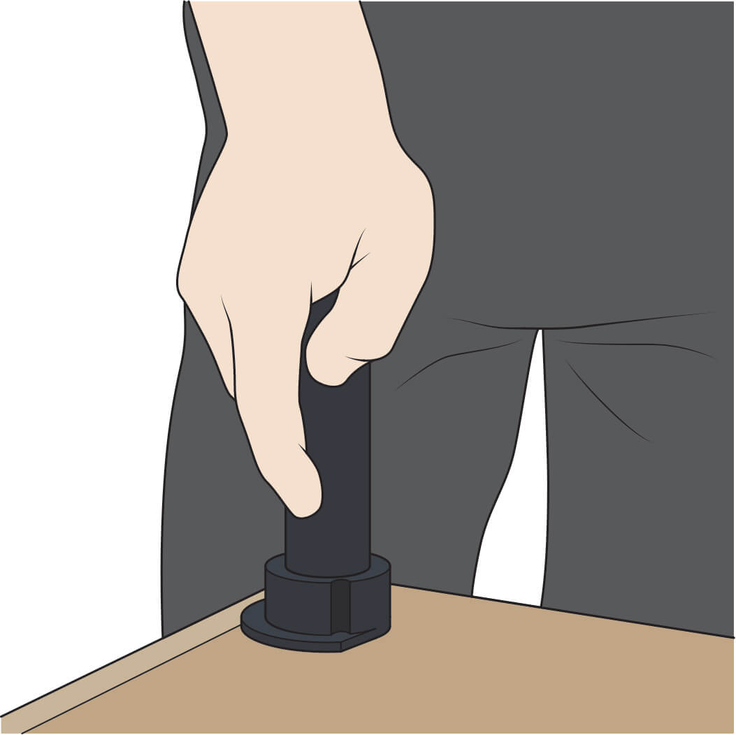 Depending on the width of the cabinet, the leg bases should already be screwed to the kitchen cabinet if not, the adjustable legs can be screwing to the underside of the cabinet with pre-drilled holes to facilitate this process. Then push the leg section into the leg base.