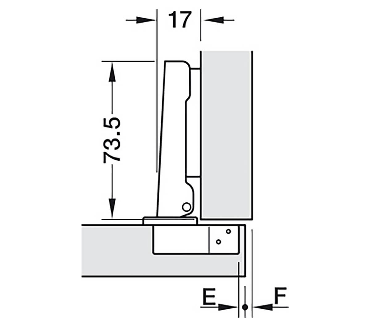 Hinge Dimensions – Showing the Gap Between the Centre of Points E and F Needed for the Hinge to Function