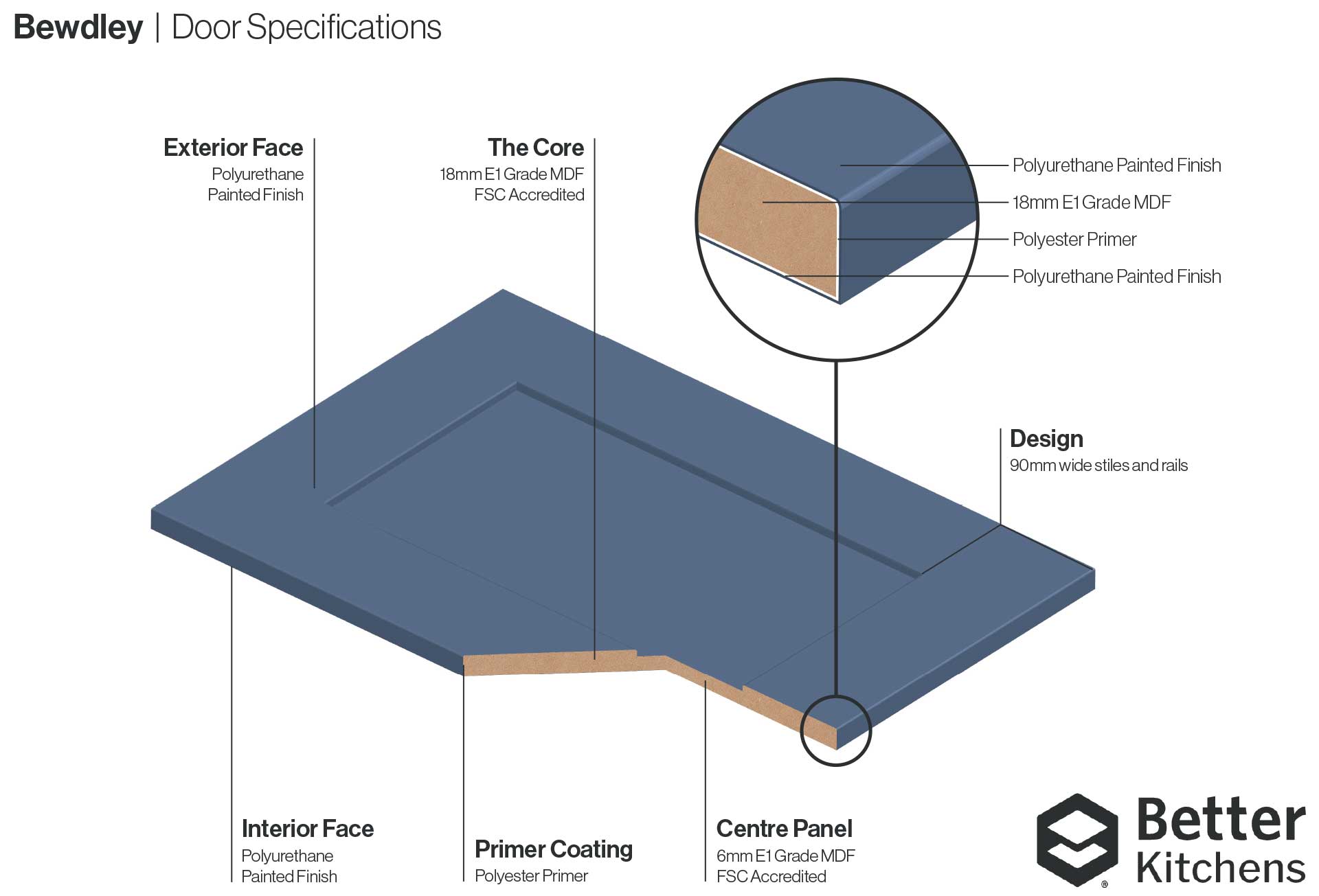 From time to time door specifications may be updated and changed. If you are returning to buy units to add to an existing order previously bought from us, we highly recommend purchasing a new sample before placing your order to ensure design, finish and colour match. Although all effort is made to let you know when a product is updated or changed, we cannot guarantee items bought separately will match perfectly to your existing kitchen.