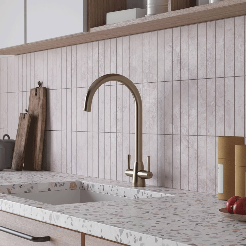 The AURORA Cascade Swan Neck Twin Lever Tap is a sleek and contemporary kitchen tap, designed to add a touch of modern elegance to any kitchen. Featuring a graceful swan neck spout and a distinctive PVD finish, this tap blends style and functionality, making it ideal for both modern and traditional settings.