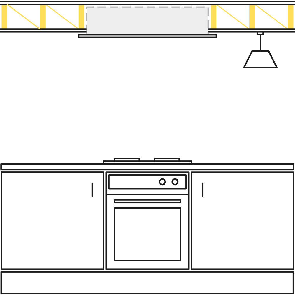 Up and out of the way, ceiling extractors work to recirculate clean, filtered air back into the kitchen when you are cooking.