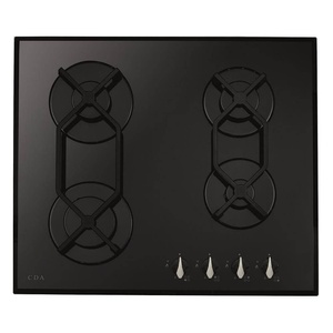 CDA HVG621BL 60cm 4 Ring Gas-on-Glass Hob, Cast Iron Supports, Black