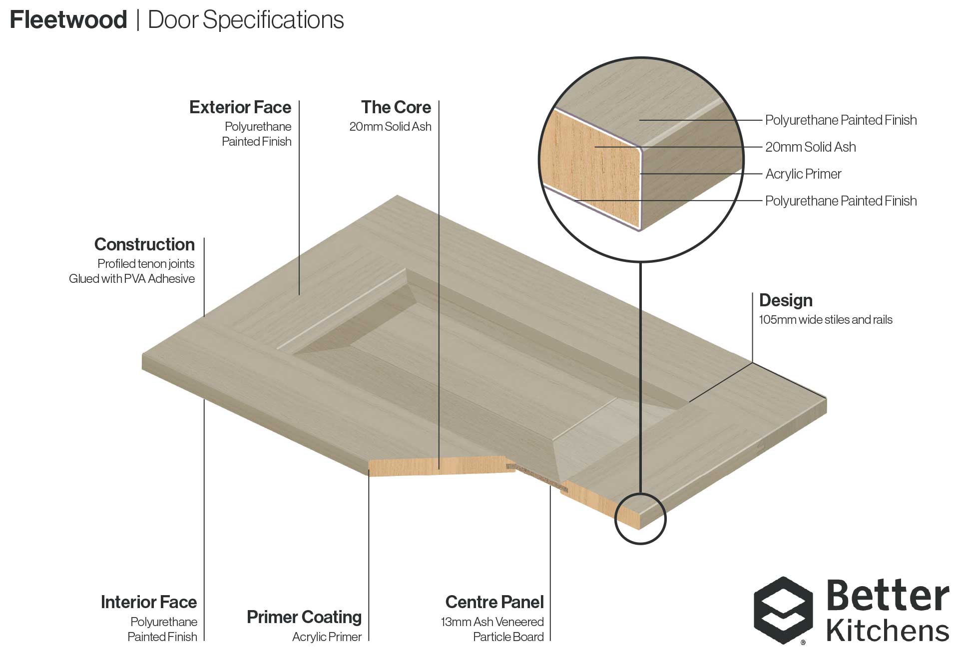 From time to time door specifications may be updated and changed. If you are returning to buy units to add to an existing order previously bought from us, we highly recommend purchasing a new sample before placing your order to ensure design, finish and colour match. Although all effort is made to let you know when a product is updated or changed, we cannot guarantee items bought separately will match perfectly to your existing kitchen.