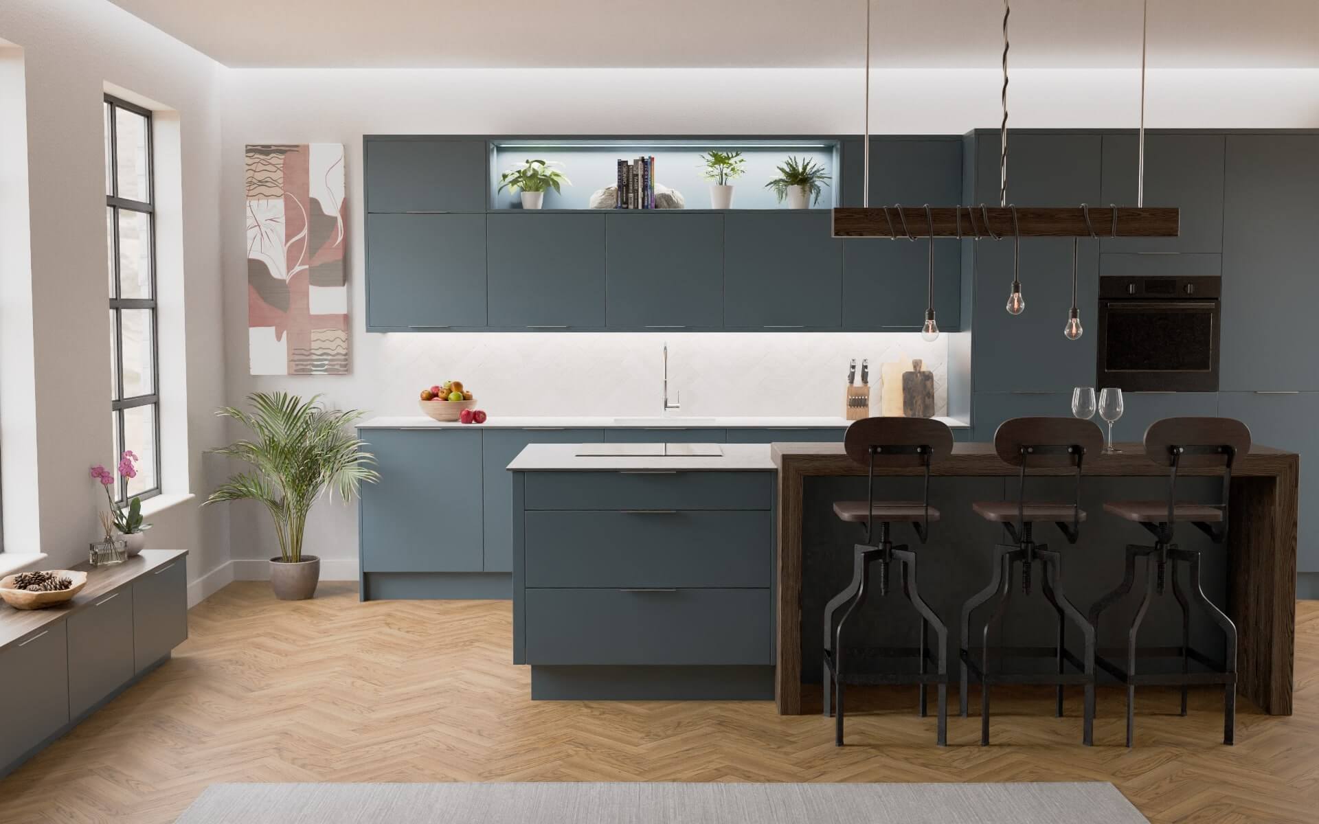 Shaker cabinets are traditionally associated with country kitchens, but they work well in modern design too. A plain shaker door with minimal detailing, especially in a muted colour, offers a nice balance between traditional shape and modern finish.