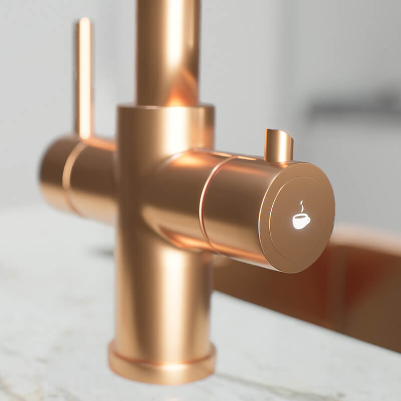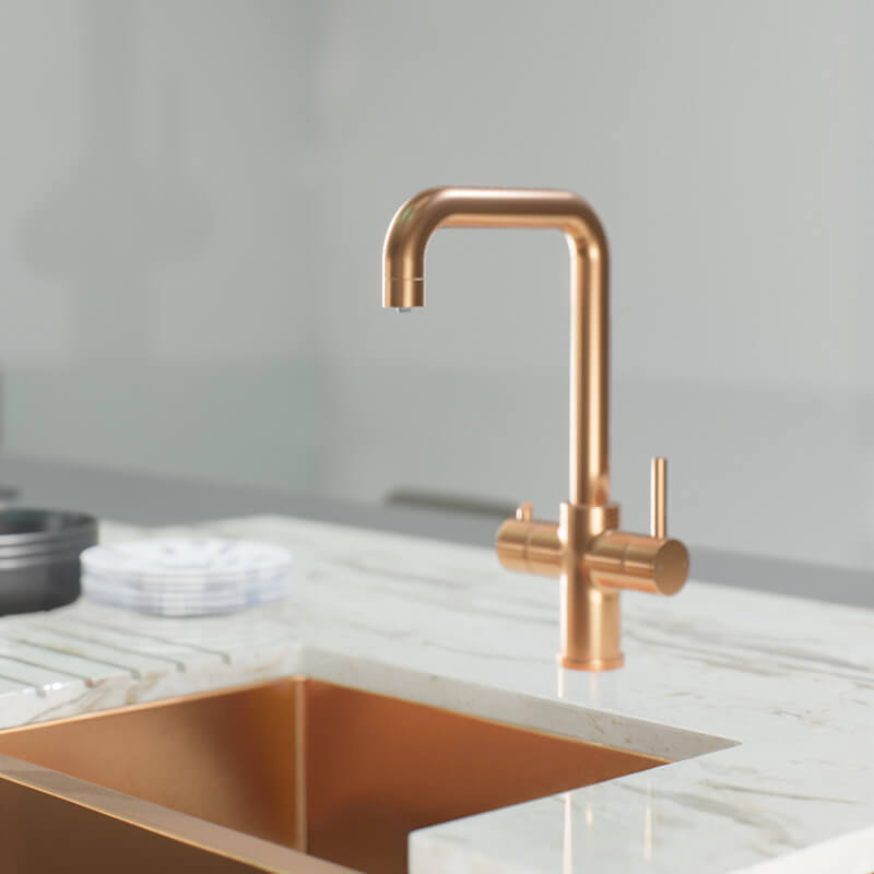 Say goodbye to the kettle and hello to instant filtered hot water on tap. In addition to providing 98°C water on demand, our 3-in-1 Boiling Tap in Copper functions as a standard twin lever mixer tap providing hot and cold water.