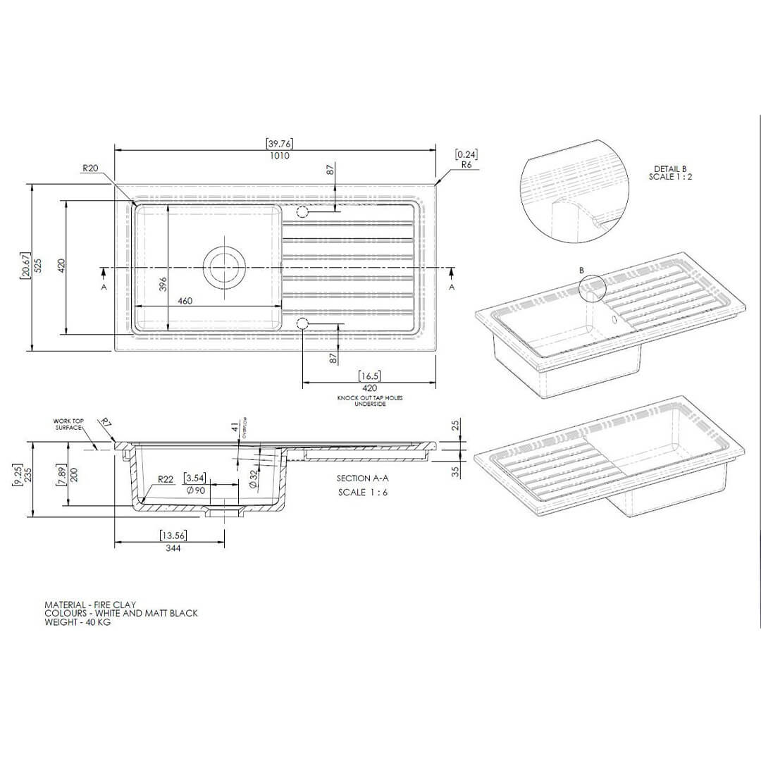 Its reversible design allows flexibility in installation, with the option to knock through your preferred tap hole. For a pre-drilled tap hole, a left-hand or right-hand drainer option is also available. The sink comes complete with a waste plug and overflow, ensuring a straightforward setup.
